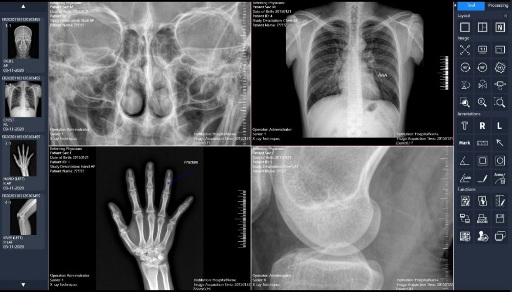 The exclusive software for StriXion™ offers Live Video X-ray (fluoroscopic images), X-ray images, and tomographic images in one package. Built upon the same intuitive and powerful ExamVue™ Duo software used in all JPI systems, the Strixion™ software gives you complete control over x-ray acquisition, technique and diagnosis.