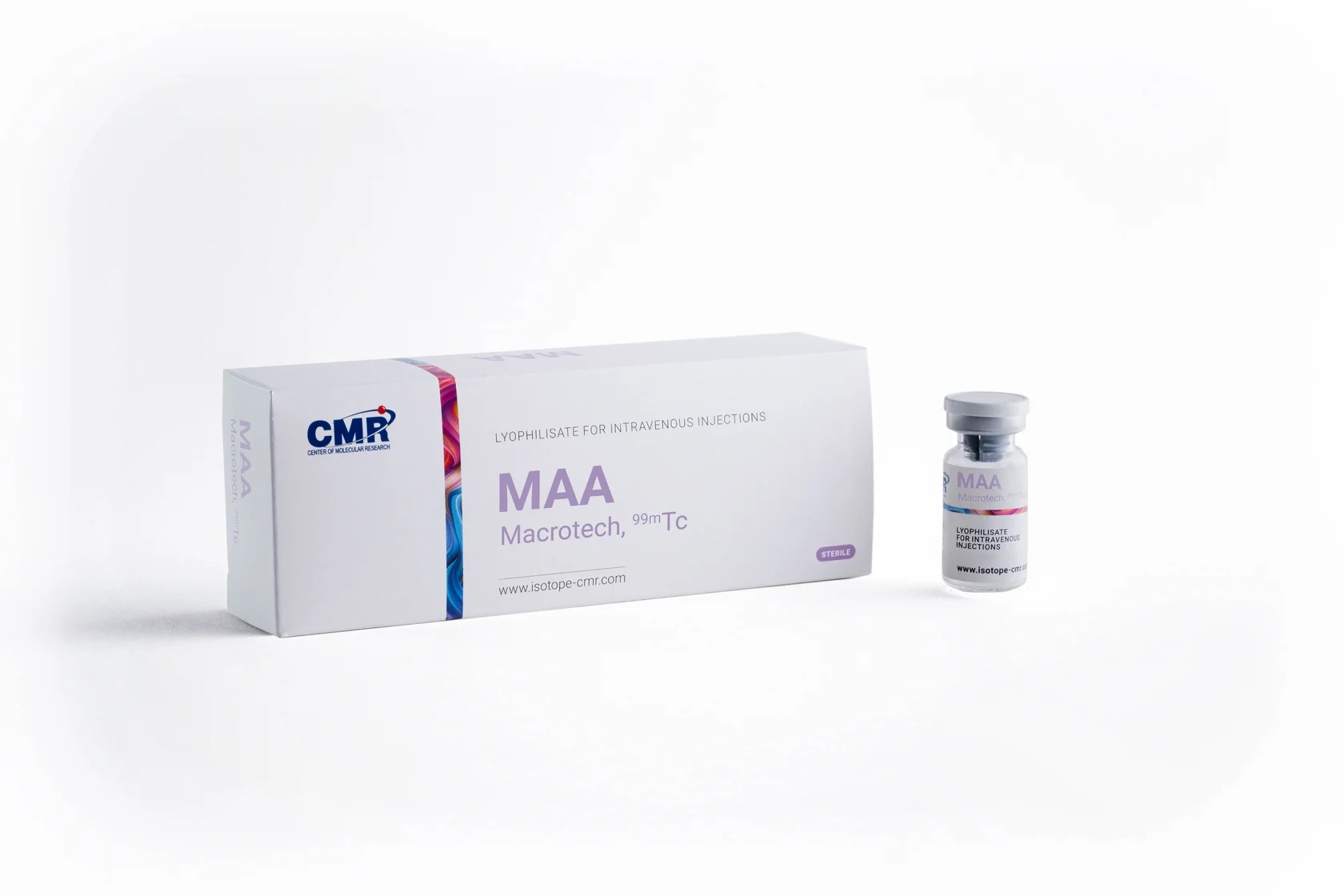 MAA is the sterile non-radioactive lyophilizate that is intended for use after the labelling with Technetium-99m.