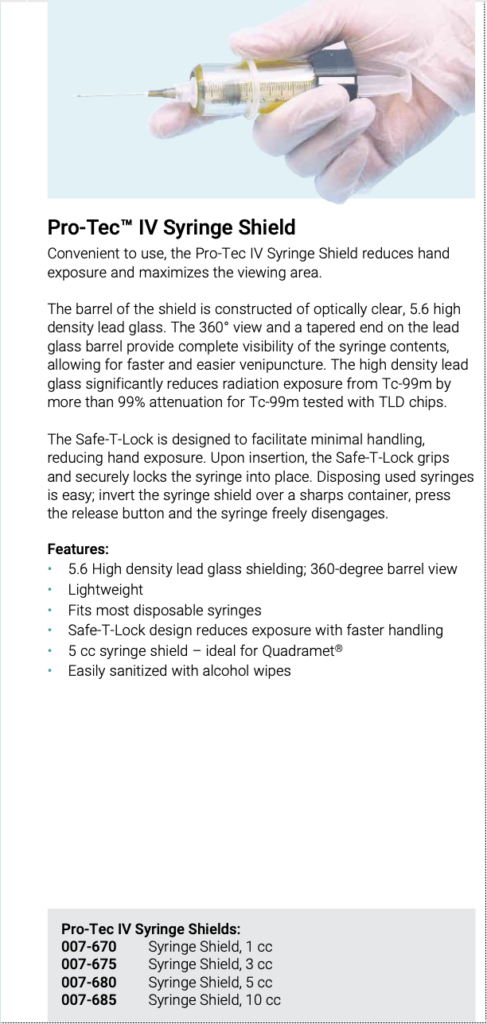 Convenient to use, the Pro-Tec IV Syringe Shield reduces hand exposure and maximizes the viewing area.